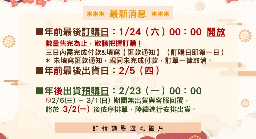 2026年春節公告 ( 保有修正權益 持續更新中 )